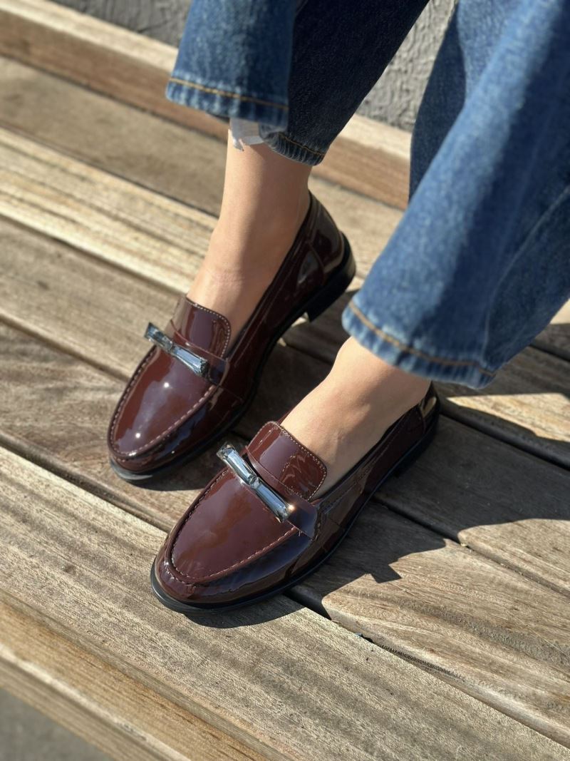 BORDO RUGAN FİYONK DETAYLI DERİ LOAFER