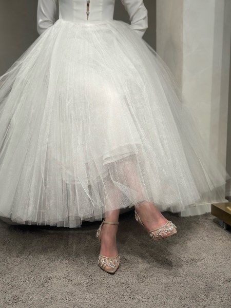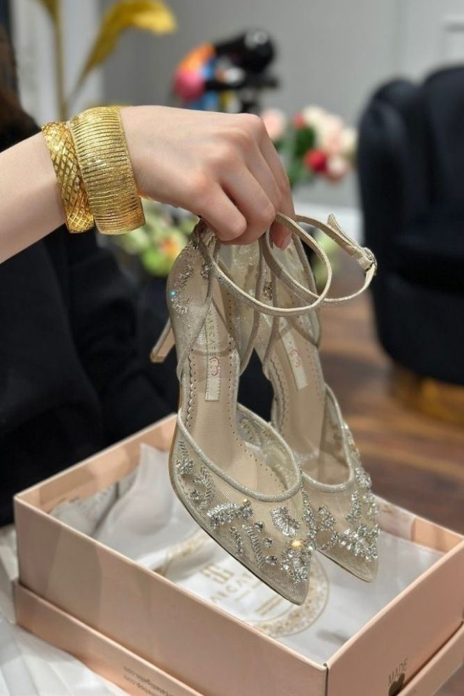 Periler ne giyer bir hayal edin... Yoğun emekler harcanarak tamamı el işçiliğiyle üretilen bu gelin ayakkabısı, İtalyan dosyaları üzerine kasnak işleme tekniğiyle modellenmiştir. 8 cm'lik esnekliğe sahip model, pedli iç dokusu sayesinde konforlu bir yürüyüş sunar. Önyüz tasarımı ile sırt işlemeleri birbirini tamamlayarak ince bilek bağının zarafetiyle buluşur. Tasarımıyla dolduran bu modelimiz, gelinlikle bakımına özen gösterilerek uzman eller tarafından dizayn edilmiştir. Gelin ayakkabılarımızda şıklık ve konfor bir arada yaşayacağınıza eminiz. Boyuta ulaşana kadar ve boyuta ulaştıktan sonra da, tasarımındaki taşlar, rengi ve zarif dokusunu korumak için özel keselerde saklanarak kutulanmaktadır. Unutulmaz bir anı olsun diye...*