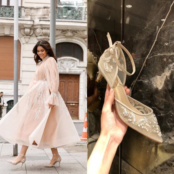 Periler ne giyer bir hayal edin...Yoğun emekler harcanarak tamamı el işçiliğiyle üretilen bu gelin ayakkabısı, italyan filesi üzerine kasnak işleme tekniğiyle modellenmiştir. 5 cm topuk yüsekliğine sahip model, pedli iç dokusu sayesinde konforlu bir yürüyüş sunar. Önyüz tasarımı ile sırt işlemeleri birbirini tammalayarak ince bilek bağının zerafetiyle buluşur.Tasarımıyla göz dolduran bu modelimiz, gelinlikle sağlayacağı uyuma özen gösteren uzman eller tarafından dizayn edilmiştir. Gelin ayakkabılarımızda şıklık ve konforu bir arada yaşayacağınıza eminiz. Size ulaşana kadar ve size ulaştıktan sonra da, tasarımındaki taşları, rengini ve zarif dokusunu koruması için özel keselerde saklanarak kutulanmaktadır. Unutulmaz bir anı olsun diye... * PERİ MODELİMİZDE İADE SEÇENEĞİ YOKTUR. SADECE TOPUK BOYU VE NUMARA DEĞİŞİMİ YAPILMAKTADIR.