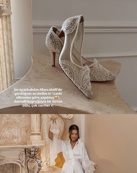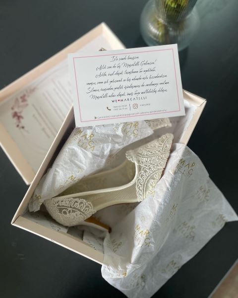 HERA topuklu gelin ayakkabısı modelimiz topuk yüksekliği 8,5 cm'dir. Tül üzeri dantel işlemesi olup çok zarif bir gelin ayakkabısı modeli olan bu ürünümüz, standart topuklu ayakkabı kalıbına sahip olması sebebiyle topuklu ayakkabılarda tercih ettiğiniz numarayı sipariş verebilirsiniz. İç tabanı yumuşacık pedli olması sebebiyle en özel gününde rahatlığından ödün vermek istemeyen MarcatelliGelin’leri için zariflik abidesi bir modelimizdir.