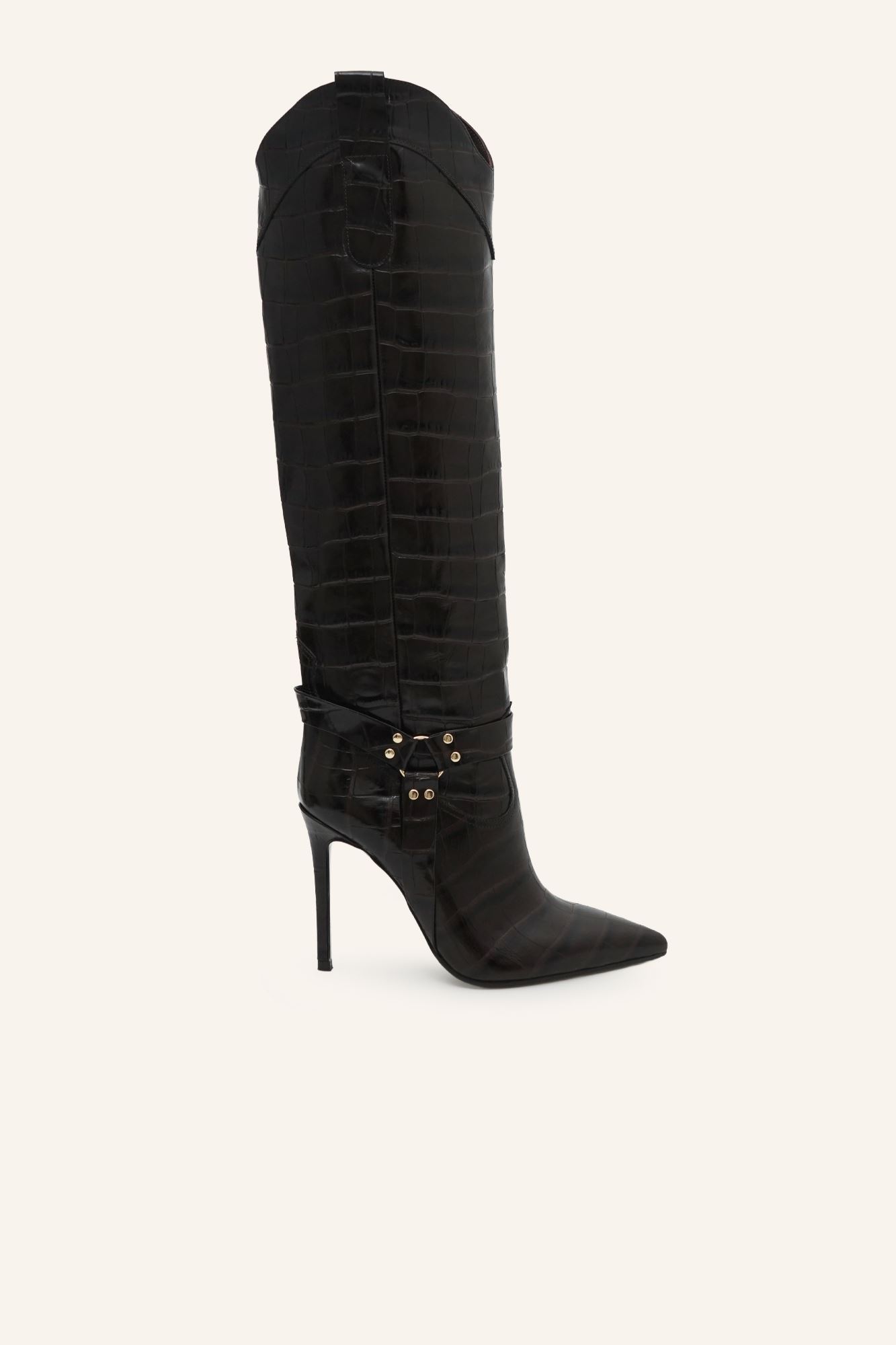 KAHVE KROKO ELFİDA DERİ ÇİZME