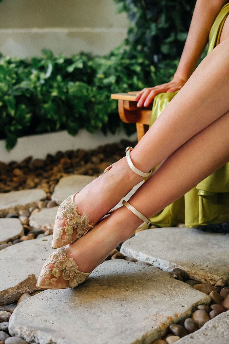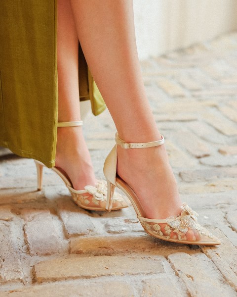 Komple saten kumaşla kaplanmış topuk kısmını 8 cm yükseklikle ödüllendirmiş Marcatelli tasarımı… Saten ve tül dokusunu stiletto şıklığıyla tamamlayan model, küçük tokalı bilek bağıyla son derece zarif …