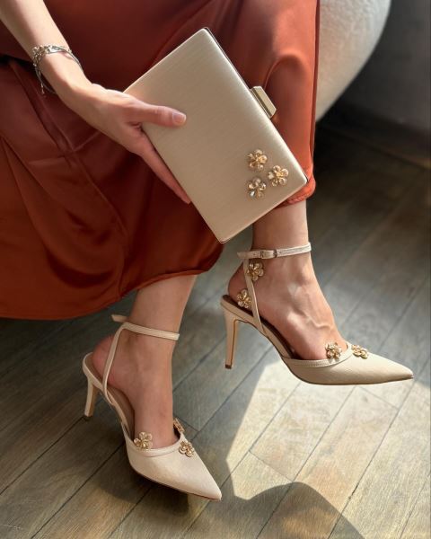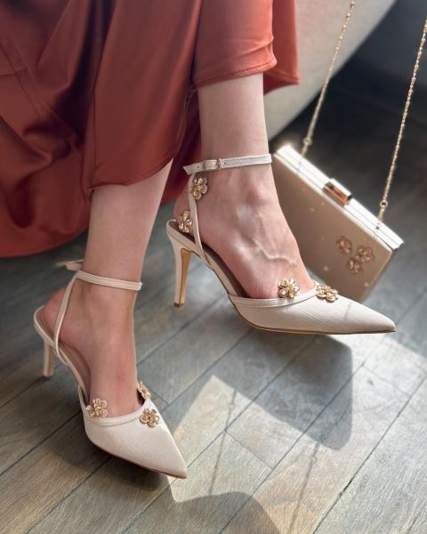 ŞAMPANYA SATEN BLOOM STİLETTO