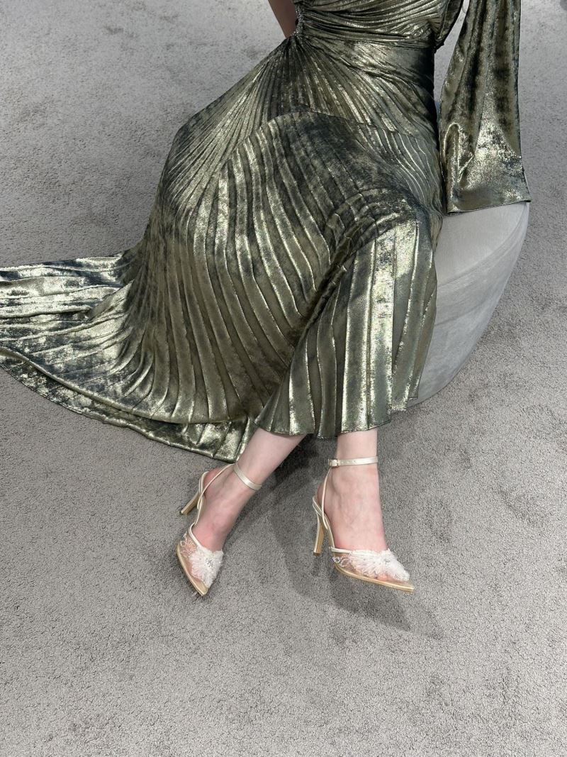 Gerçek deri iç materyali ayaklarını konforla sarar, tam kalıbı mükemmel bir uyum sağlar. Işığı en zarif şekilde yansıtan taşlarıyla ROZA, aşkın ve inceliğin sembolüdür. Düğün, davet veya özel kutlamalarda, her kadının ışıltısını tamamlayan en özel dokunuştur.