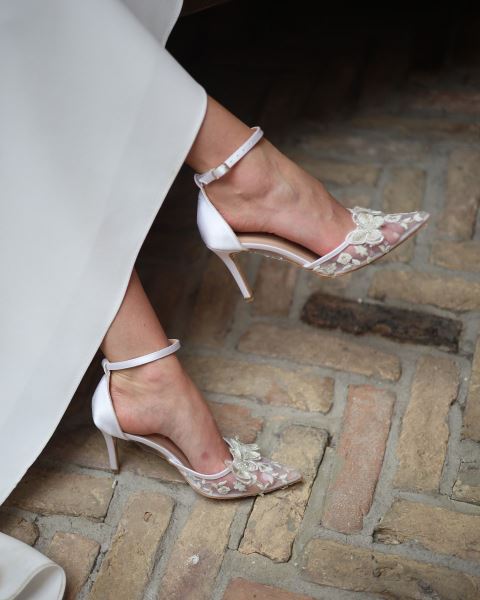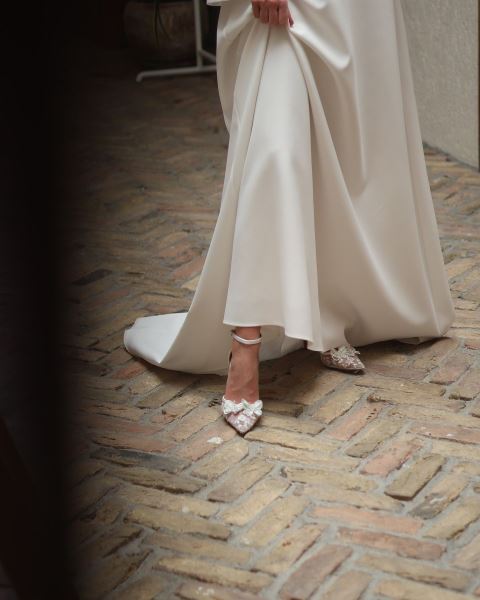 Komple saten kumaşla kaplanmış topuk kısmını 8 cm yükseklikle ödüllendirmiş Marcatelli tasarımı… Saten ve tül dokusunu stiletto şıklığıyla tamamlayan model, küçük tokalı bilek bağıyla son derece zarif …