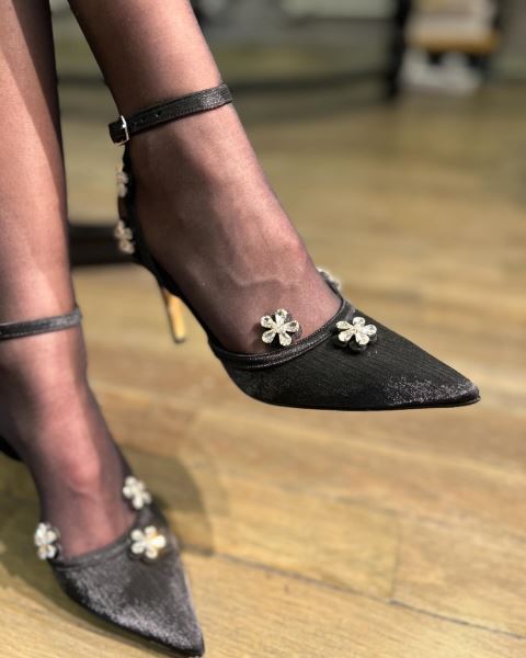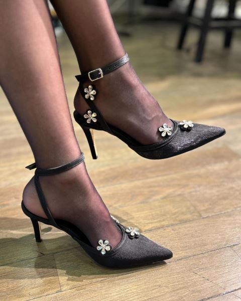 SİYAH SATEN BLOOM STİLETTO