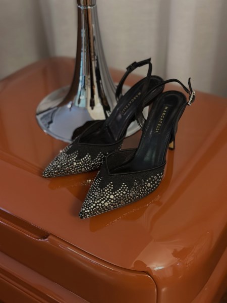 SİYAH SATEN YONA TOPUKLU AYAKKABI
