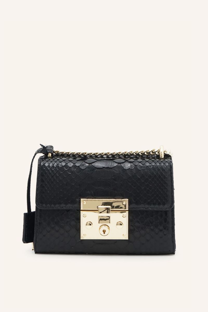 SİYAH YILAN LAMİNA PİTON DERİSİ ÇANTA