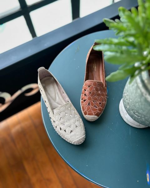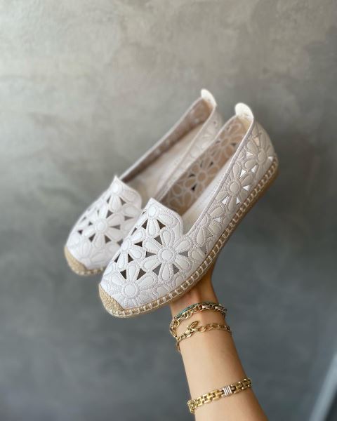 Çiçek Espadril, topuk boyu 2 cm olan yarım numara geniş kalıplı bir ayakkabıdır. Espadril, özel kumaş materyal kullanılarak üretilmiştir. Çiçek desenli tasarımı, espadrilin şıklığını ve zarafetini artırır.