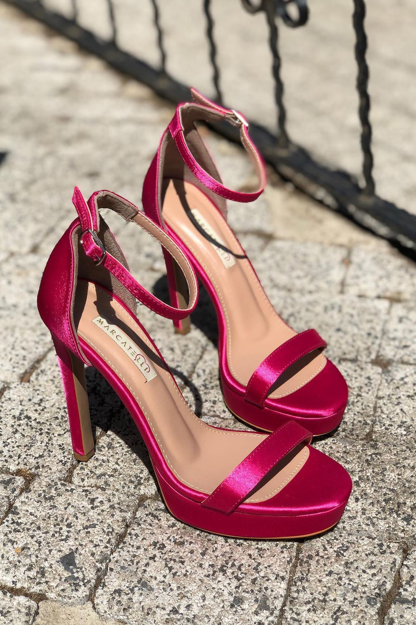 FUŞYA SATEN İNCE BANTLI PLATFORM TOPUKLU AYAKKABI