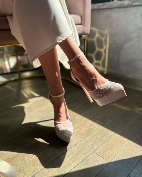 Martin Platform Topuklu Gelin Ayakkabısı, yüksek topuklu ve platformlu tasarımı ile dikkat çekici bir ayakkabı modelidir. 13 cm yüksekliğindeki topuğu ile rahat ve şık bir görünüm sunarken, 2,5 cm platform boyu sayesinde rahatlık ve konfor da sunmaktadır. Tam kalıplı tasarımı ise ayaklarınızın rahat ve doğru şekilde yerleşmesini sağlar. Suni deri materyal kullanılarak üretilmiş olan bu ayakkabı, aynı zamanda kaliteli bir görünüm sunar.