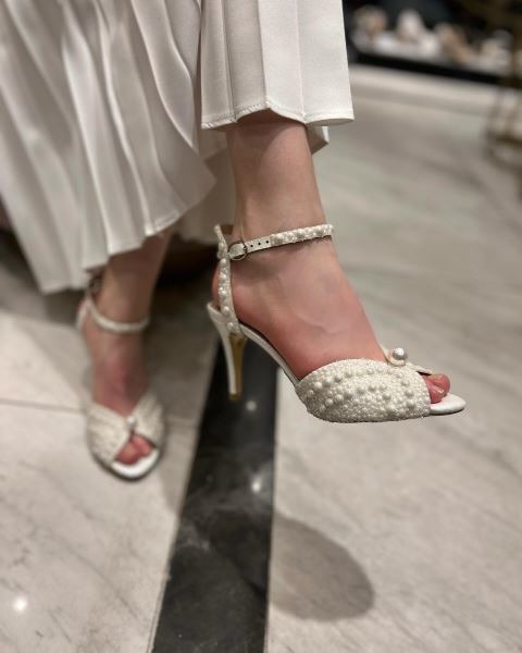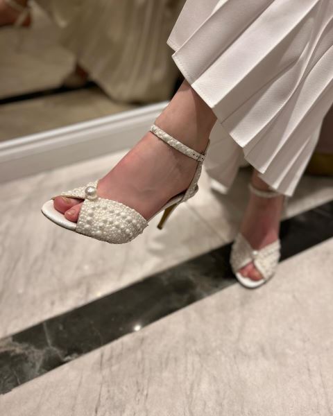 Derinlerde gizli bir inci.. Pearl gelin ayakkabımızın topuk yüksekliği, 8.5 cm'dir. Ürünümüzün iç astarı hakiki deri olmakla beraber oldukça rahat bir kalıptır. İç tabanı tamamen pedlidir. İncililerle süslenmiş bilek bağı, yürüyüşünüze güven katacak. Açık ön yüzü ferah bir his sağlarken tasarımının üstüne kondurulmuş iri inci tanesiyle daha da anlamlı.. Tasarımıyla göz dolduran bu modelimiz, gelinlikle sağlayacağı uyuma özen gösteren uzman eller tarafından dizayn edilmiştir. Gelin ayakkabılarımızda şıklık ve konforu bir arada yaşayacağınıza eminiz. Size ulaşana kadar ve size ulaştıktan sonra da, tasarımındakşi taşları, rengini ve zarif dokusunu koruması için özel keselerde saklanarak kutulanmaktadır. Unutulmaz bir anı olsun diye..