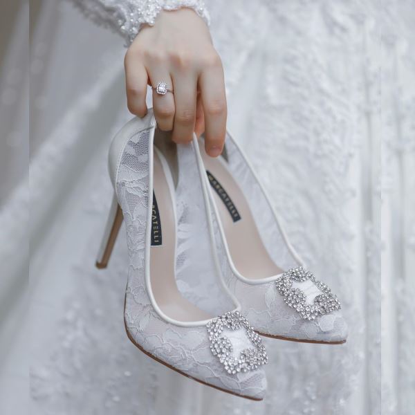 Dantelin Şeffaflığı...Mükemmel bir yumuşaklık sağlayan iç tabanındaki pedli ve esnekliği özgür bırakan dantel dış yüzeyiyle, hem zarif hem konforlu. Tamamı dantelle bezenmiş babetimiz, ön yüzünde metal renkli tokayla sırt kısmı deriyle buluşarak kendisini bütünlüyor. Tasarımıyla göz dolduran bu gelin ayakkabısı , gelinlikle sağlayacağı uyuma özen gösteren uzman eller tarafından dizayn edilmiştir. 11 cm topuk boyu ve ince yapısı sayesinde adımlarınız sizi hiç yormayacak. Gelin ayakkabımızda şıklık ve konforu bir arada yaşayacağınıza eminiz. Size ulaşana kadar ve size ulaştıktan sonra da, tasarımındaki taşları ve rengini koruması için özel keselerde saklanarak kutulanmaktadır. Unutulmaz bir anı olsun diye...